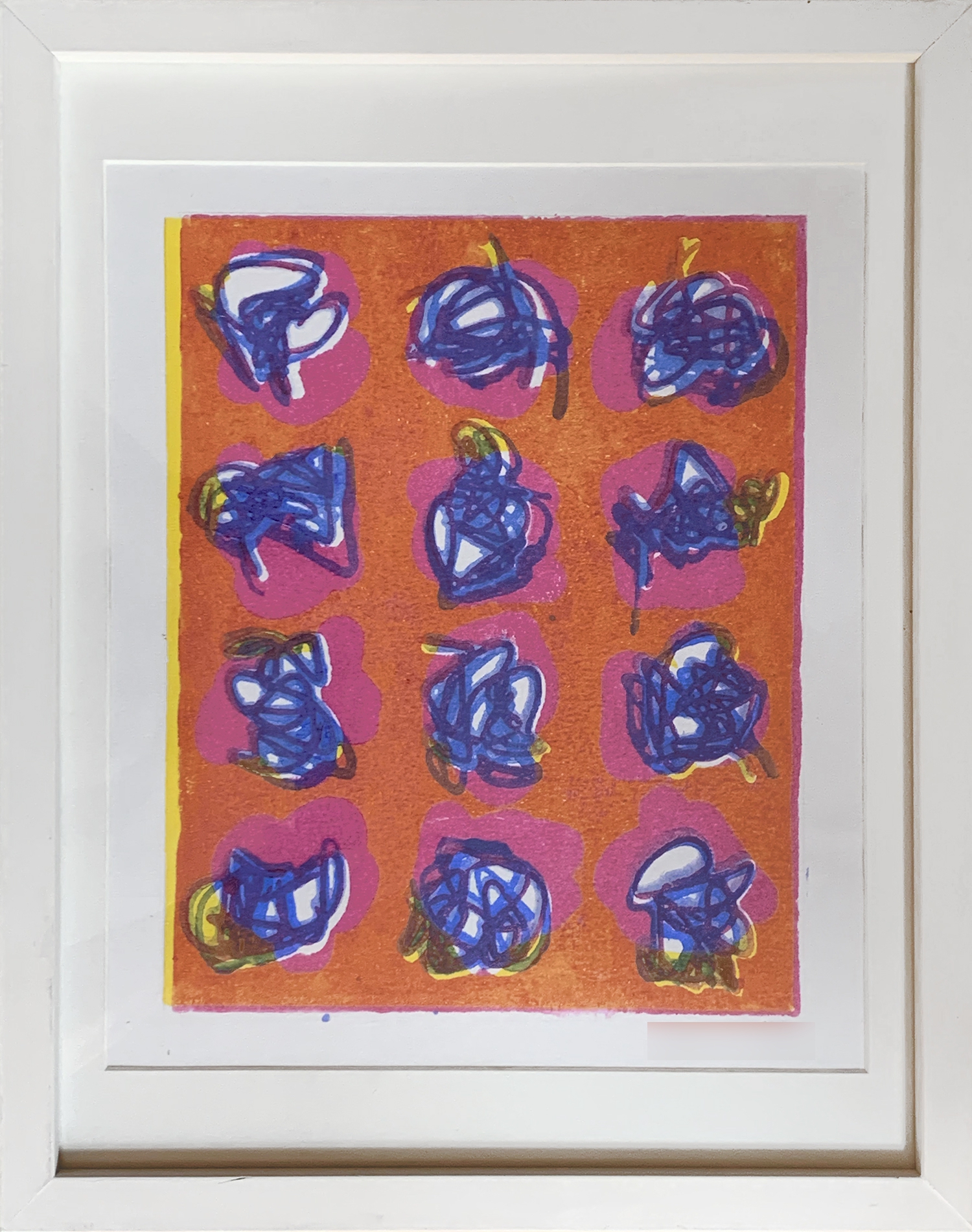 Acrylic on paper, unique block print 38X31cm with frame 28x24cm without frame