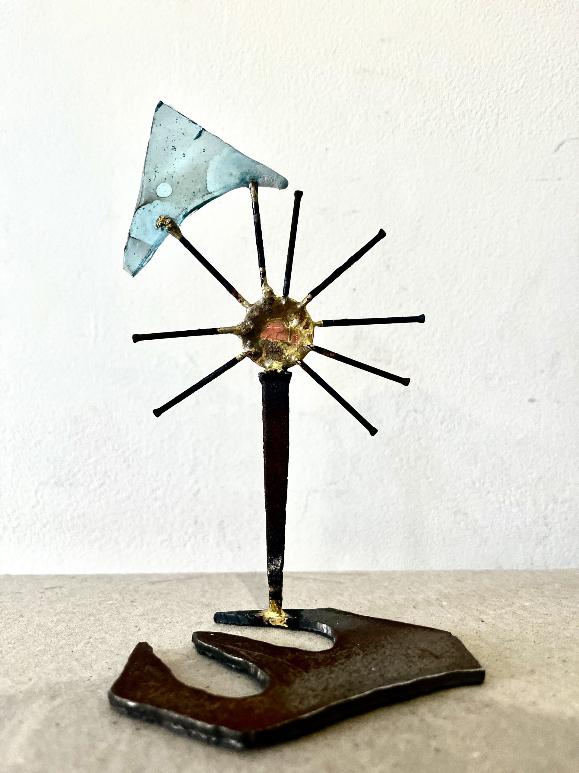 Metal, penny, nails, glass